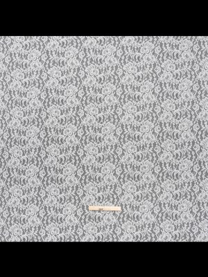 Corded Lace Panel with Finished Eyelash Fringe Edges – Smoke Floral Flows