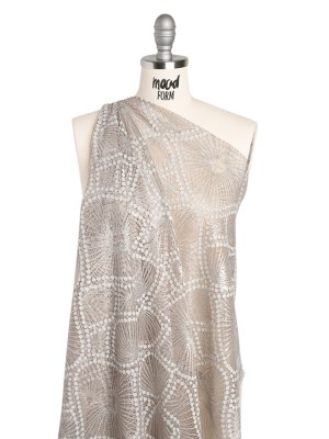 Metallic Raschel Lace Panel with Finished Edges – Sandstone Gray and Silver Sun Ray Ogees