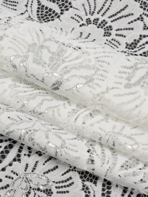 Metallic Raschel Lace Panel with Finished Edges – Ivory and Silver Bold Florals
