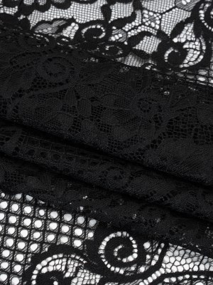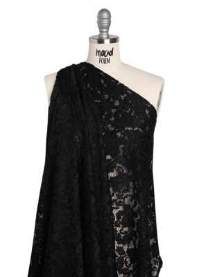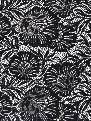 Metallic Raschel Lace Panel with Finished Edges – Black and Black Bold Florals