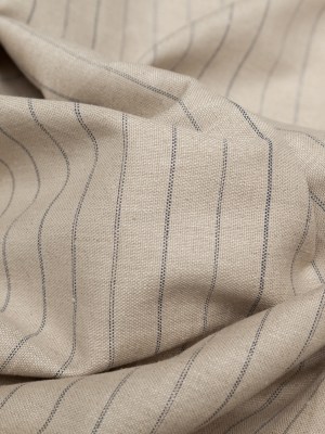 Humus and Blue Depths Double Broken Pinstriped Linen and Rayon Woven