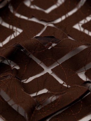 Brown Geometric Lasercut Cotton Poplin with Abstract Stitched Tulle Overlay