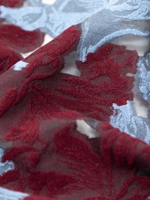 Italian Burgundy and Light Blue Floral Embroidered Wool Burnout