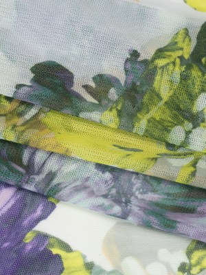 Polyester Stretch Mesh – Yellow, Olive and Navy Floral – Designer Deadstock