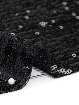 Stretch Mesh with Baby Sequin Rows – Black on Black – Designer Deadstock