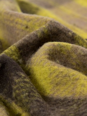 Medium Apple Green Plaid Wool bonded with Solid Black Lamb Leather