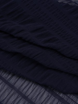 Ruched Stretched Nylon Mesh – Navy Blue Stripes – Designer Deadstock