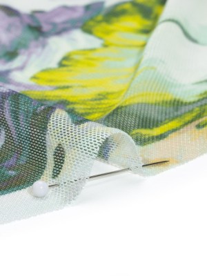 Polyester Stretch Mesh – Yellow, Olive and Navy Floral – Designer Deadstock