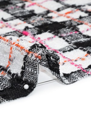 Polyester Tweedy Woven – White and Rainbow Ribbed Windowpane Check – Deadstock