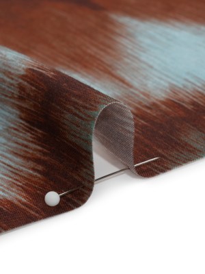 Tencel Woven Print – Red Brown and Aqua Ikat Zig Zags – Mood Exclusive Water and Wine