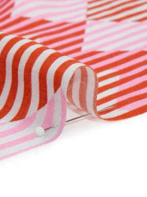 Slubbed Viscose Woven Print – Red and Pink Geometric Stripes – Mood Exclusive Eye Play