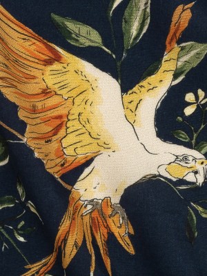 Sustainable Viscose Woven Print – Navy and Green Birds in Branches – Mood Exclusive Avian Adoration