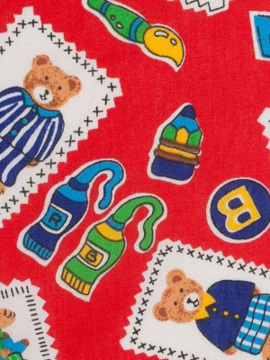 Tomato Red Bear Postcard and Alphabet Cotton Print
