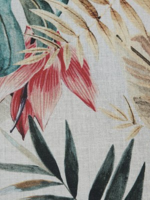 Cotton Voile – White Tropical Leaves – Efficacy of Contentment Print – Mood Exclusive Key Largo Collection