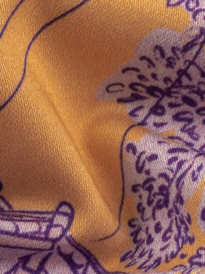 Stretch Cotton Sateen – Orange and Fair Orchid Streetscapes and Trees – Growing Roots Print – Mood Exclusive Wisteria Collection