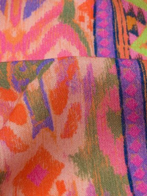 Gauzy Wrinkled Rayon Woven Panel Print – Pink and Purple Geometric Ikat – Mood Exclusive Sunny Square