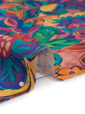 Linen and Rayon Woven – Purple, Orange and Green Painterly Flower Jungle – Mood Exclusive Jungle Jubilee Print
