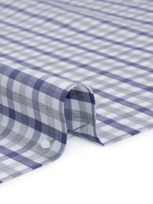Cotton Oxford Shirting – Country Blue, Steel Gray and Midnight Plaid – Deadstock