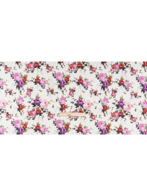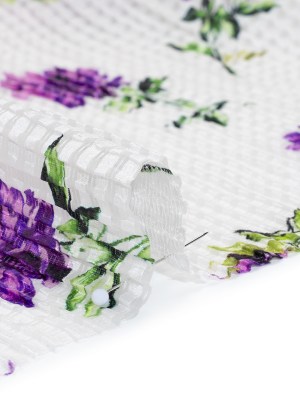 Ruched Silk Blend Striped Dobby Made in Italy – White, Pink and Purple Floral – Deadstock