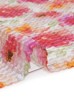 Ruched Silk Blend Striped Dobby Made in Italy – Magenta, Orange and Light Green Floral – Deadstock