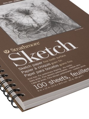 Strathmore 400 Series Spiral Sketchbook, Micro Perforated – 100 Sheets, 60lb – 9″ x 12″