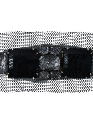 Black & Silver Mesh Covered Big Jewel Applique – 1″ x 5″
