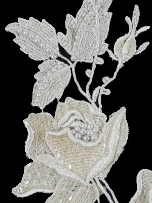 Cream Beaded, Sequined and Corded Lace Applique – 6″