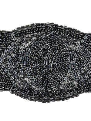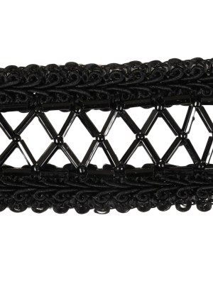 Vintage Black Rectangular Beaded Latticework and Gimp Braid Applique – 7.875″ x 1.375″