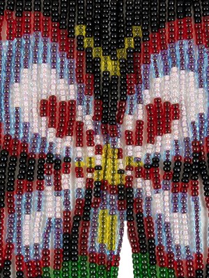 Vintage Red, Yellow and Black Butterfly Beaded Fringe Applique – 7″ x 5.25″