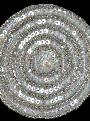 Vintage White Iris Sequins and Silver Lined Seed Beaded Concentric Circles Applique – 3.375″
