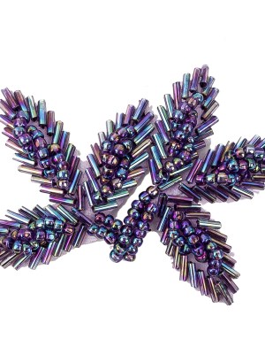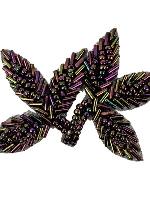 Vintage Purple Iris Bugle and Seed Beaded Foliage Applique – 2.25″ x 3.25″