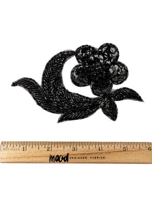 Vintage Black Sequins and Beaded Floral Applique with Rhinestone Core – 3.25″ x 5″