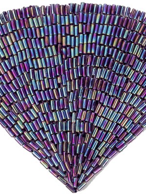 Vintage Purple Iris Bugle and Chop Beaded Abstract Applique – 4.25″ x 5.5″
