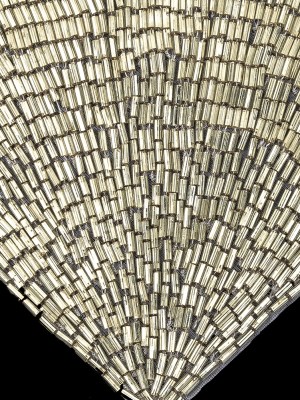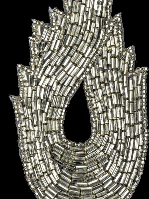 Vintage Silver-lined Bugle Beaded Abstract Applique – 4.625″ x 2.5″