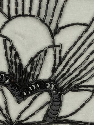 Vintage Black Floral Lines Right Glass Beaded Sheer Panel Applique – 7.5″ x 6.75″