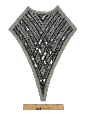 Vintage Silver Sequins and Beaded Pointy Collar Applique – 15″ x 8″