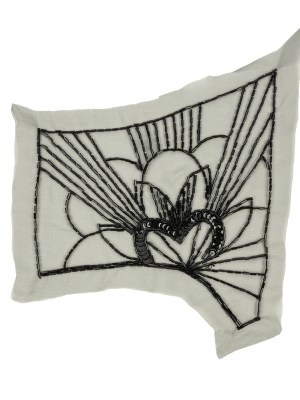 Vintage White and Crystal Iris Beaded and Sequins Abstract Sheer Panel Applique – 11.75″ x 17.5″