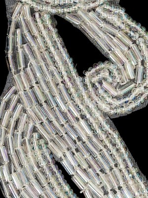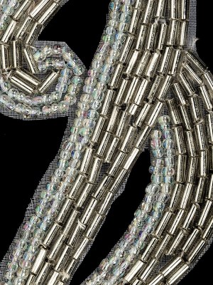 Platinum Frosting and Ice Flow Bugle and Seed Beaded Applique – 6.125″ x 2″