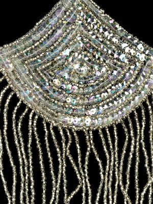 Vintage Crystal Iris Sequins and Silver-lined Seed Beaded Leaf Applique – 3.75″ x 1.75″