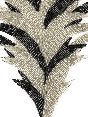 Vintage Black and Silver Bugle Beaded Large Foliage Applique – 9.625″ x 8″