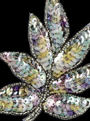 Vintage Crystal Iris Pastel Sequins and Silver-lined Beaded Leaf Applique – 4″ x 3″