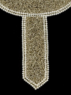Vintage Fancy Pearl Bordered Silver-lined Beaded Neckline Applique – 8.75″ x 9.375″