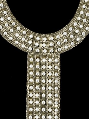 Vintage Fancy Pearl and Silver-lined Beaded Neckline Applique – 13″ x 6.75″