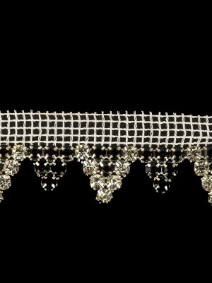 Vintage Czech Crystal Rhinestones on White Mesh Fringe Trimming – 1″