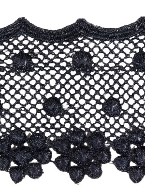 Navy Dimensional Flowers and Net Venise Lace Trim – 2.875″