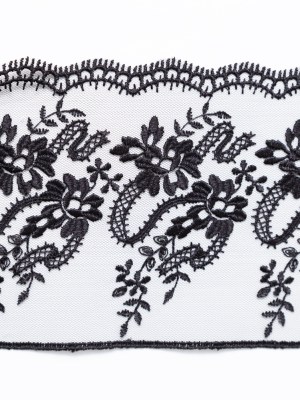European Black Floral Embroidered Lace on Mesh – 4″