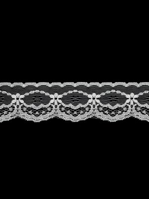 White Abstracted Flowers Lace Trim with Single Scalloped Edge – 1.25″