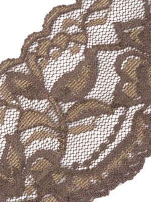 Famous NYC Designer Brown Two Tone Floral Vines Stretch Lace Trim with Scalloped Edges – 2″