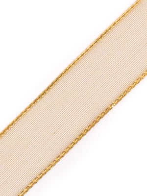 Marzipan Woven Ribbon with Navy Blazer and White Stitched Border – 0.75″