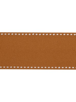 Grosgrain Ribbon with White Stitched Borders – Light Brown – 1.5″